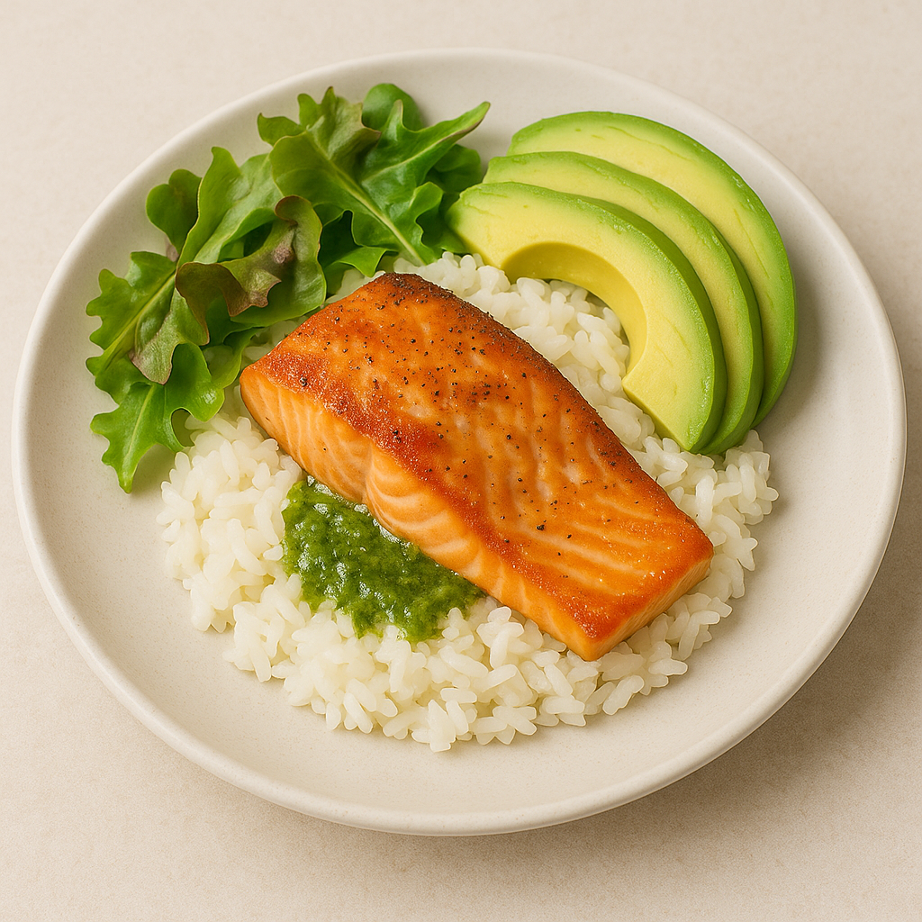 ข้าวหน้าปลาแซลมอน + อะโวคาโด 1 ผล
